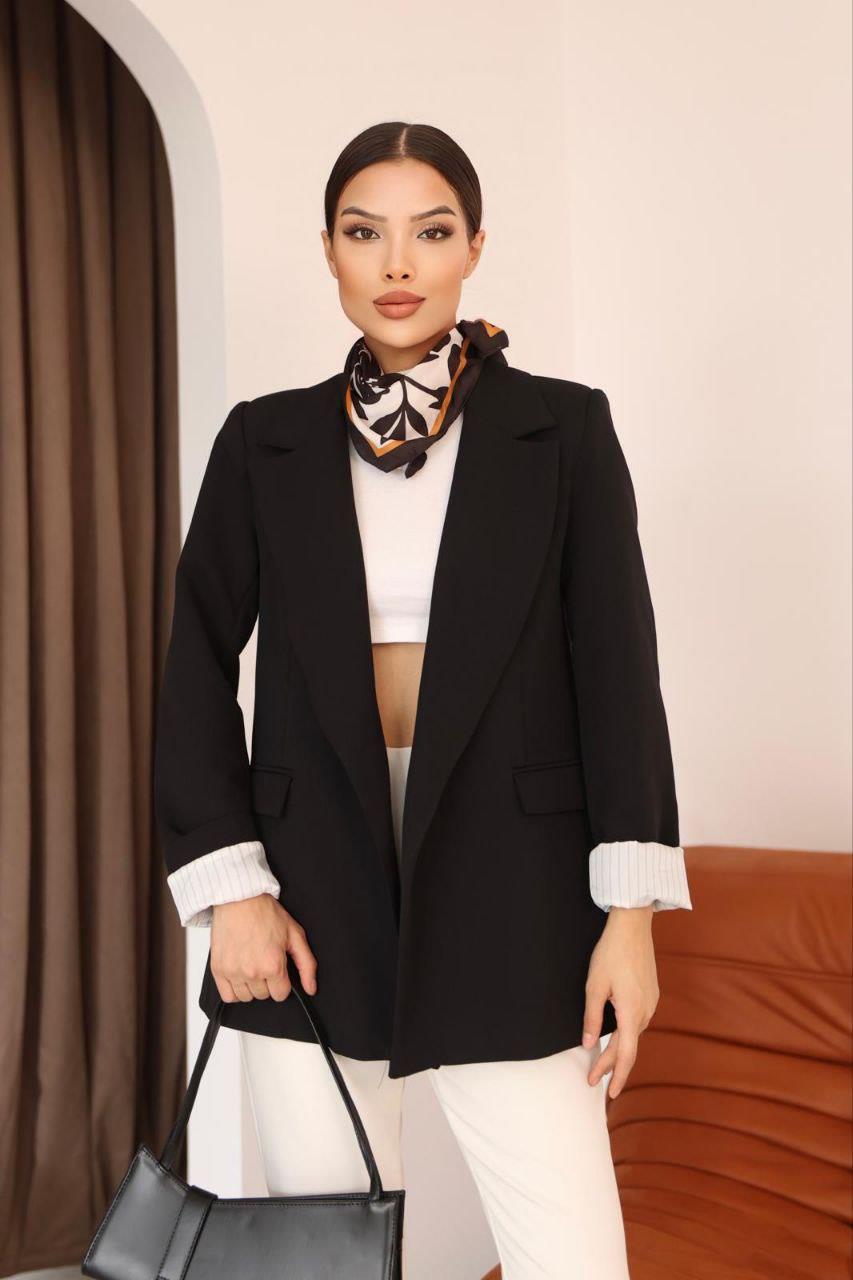 Çizgili Astar Detaylı Oversize Siyah Blazer Ceket