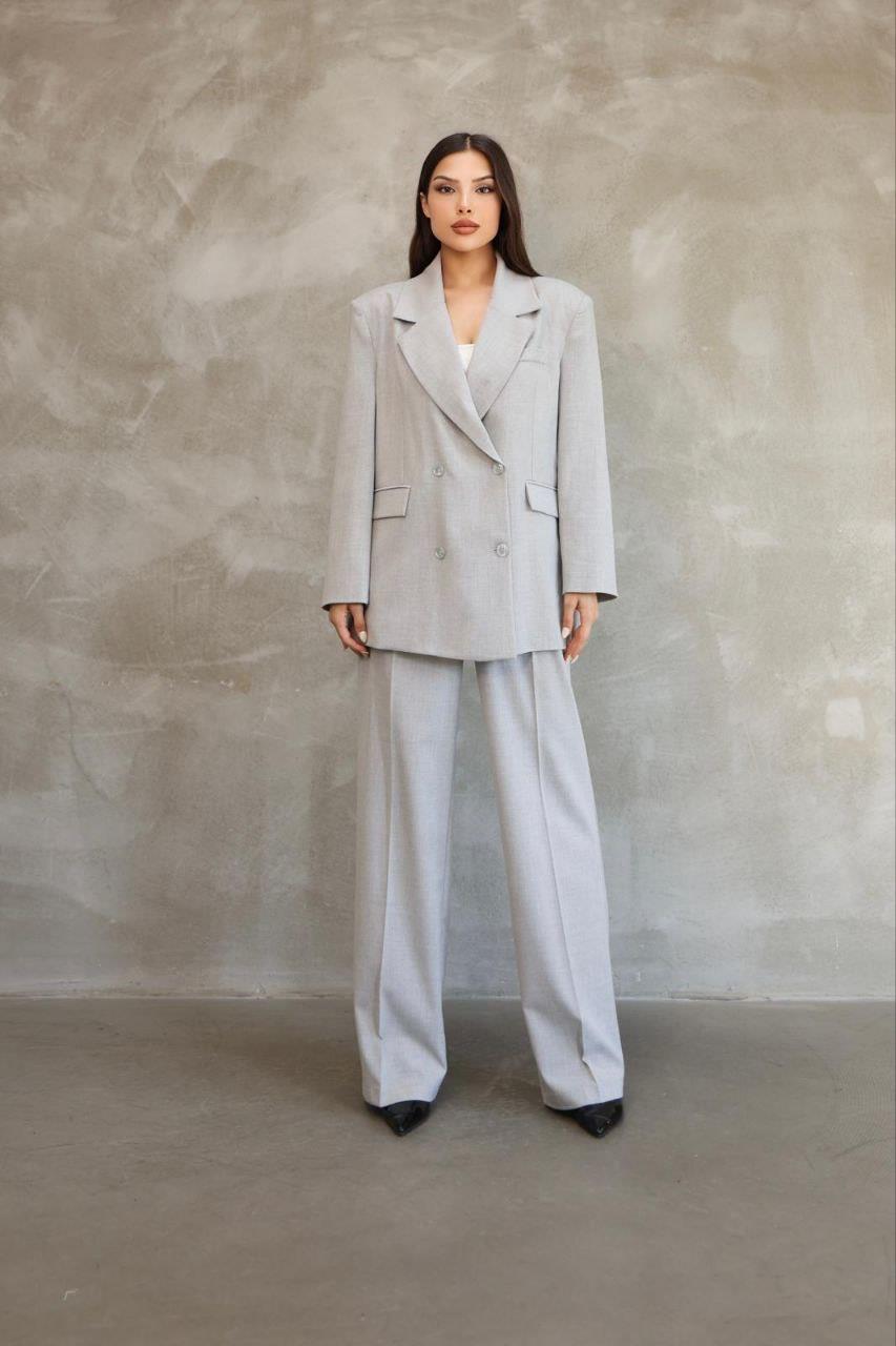 Kadın Gri Premium Poliviskon Ceketli - Pantolonlu Takım