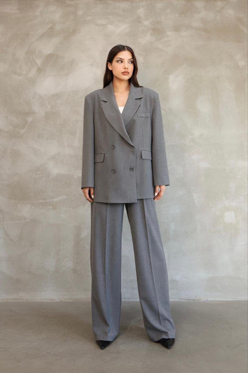 Kadın Antrasit Premium Poliviskon Ceketli - Pantolonlu Takım