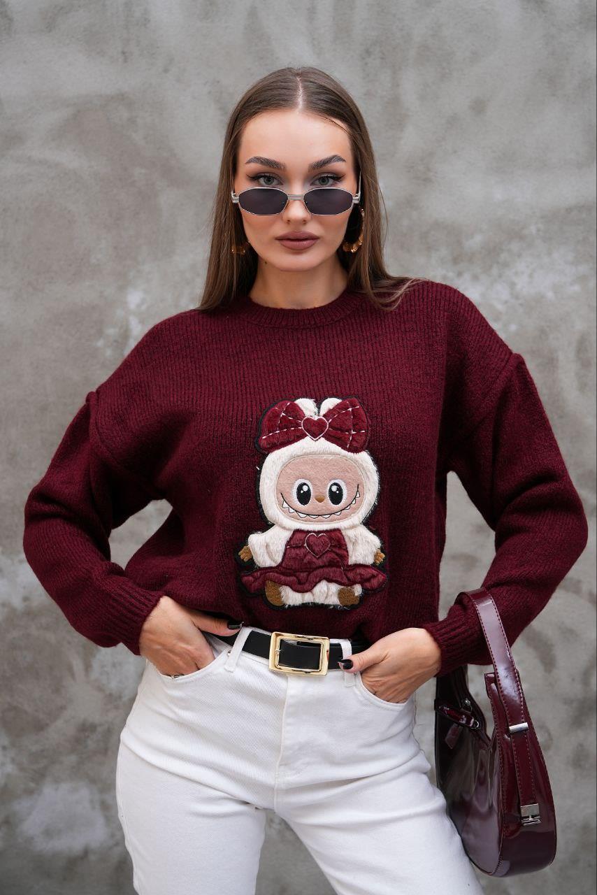 Labubulu Bordo Triko Kazak: Yumuşak Kazakta Pop Kültür Dokunuşu