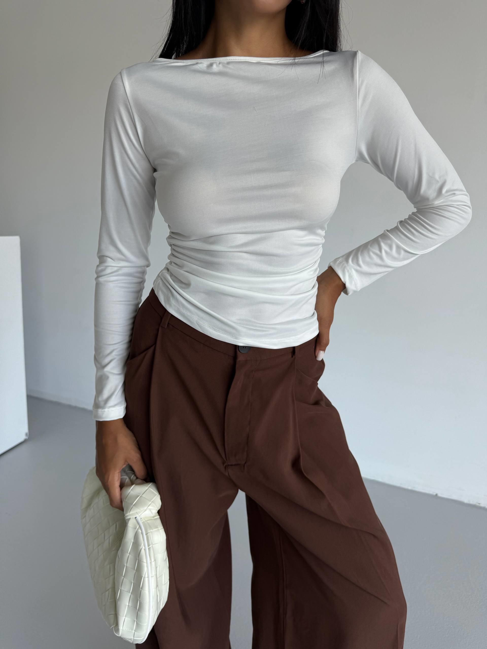 Kadın Uzun Kollu Beyaz Vücudu Saran Bluz