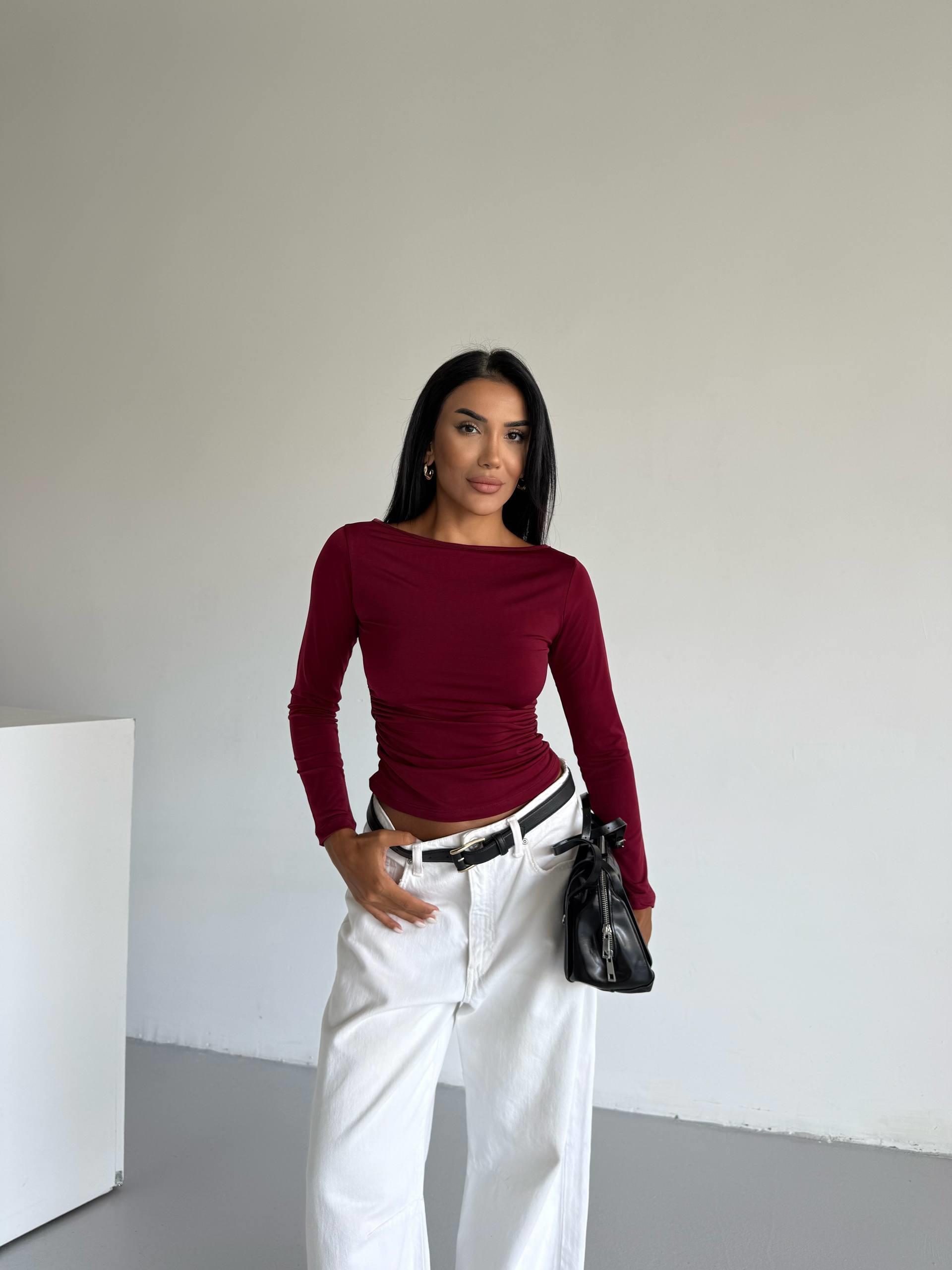 Kadın Uzun Kollu Bordo Vücudu Saran Bluz