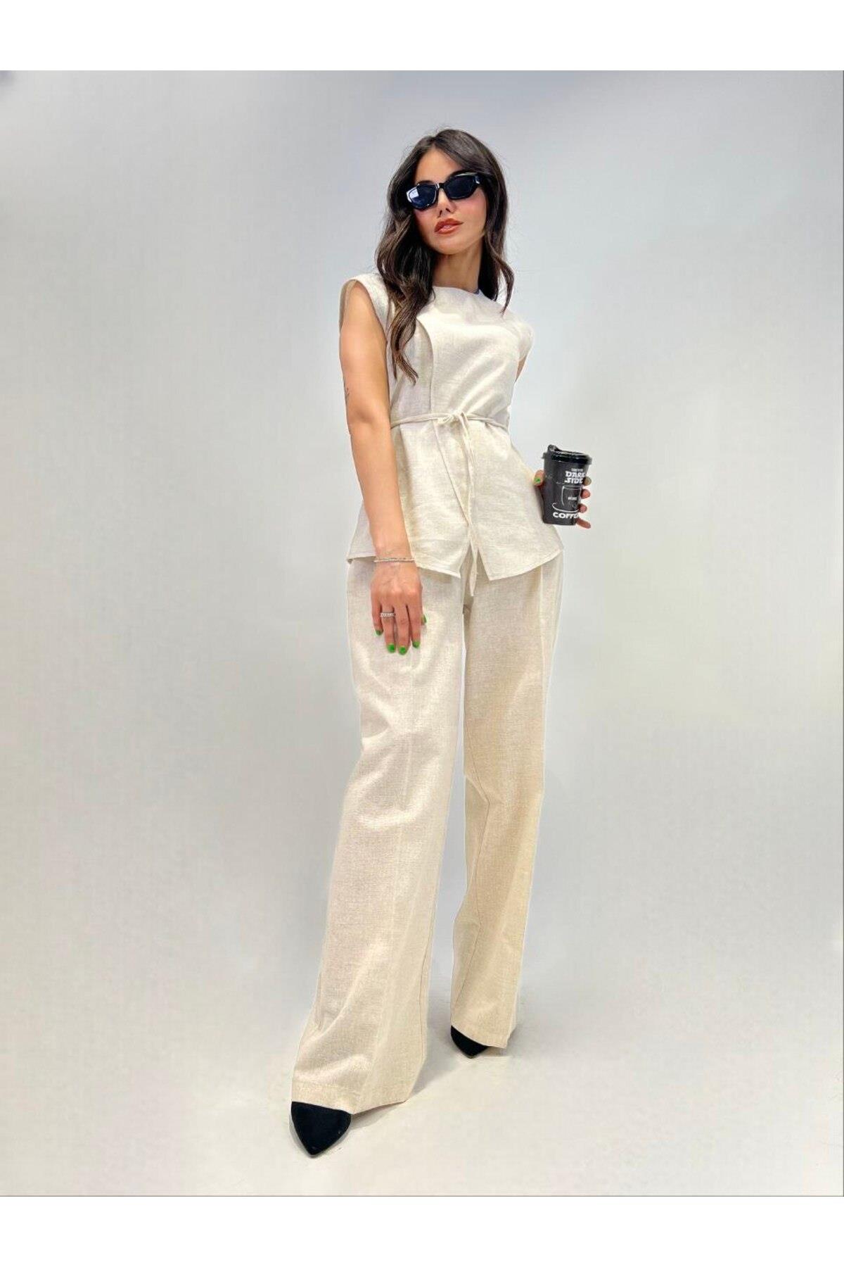 KADIN KETEN GÖMLEKLİ PANTOLON ALT ÜST TAKIM