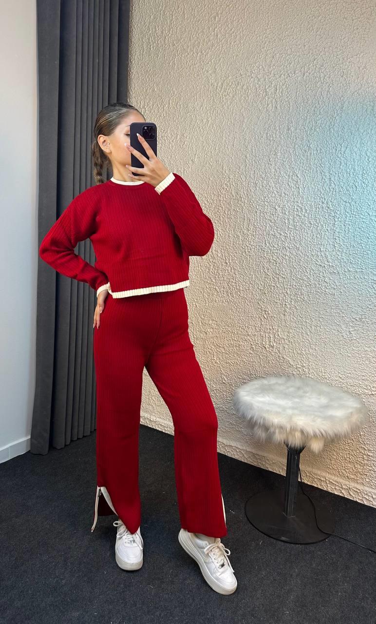 Kadın Kırmızı Triko Alt Üst Takım – Rahat & Şık Günlük Kombin