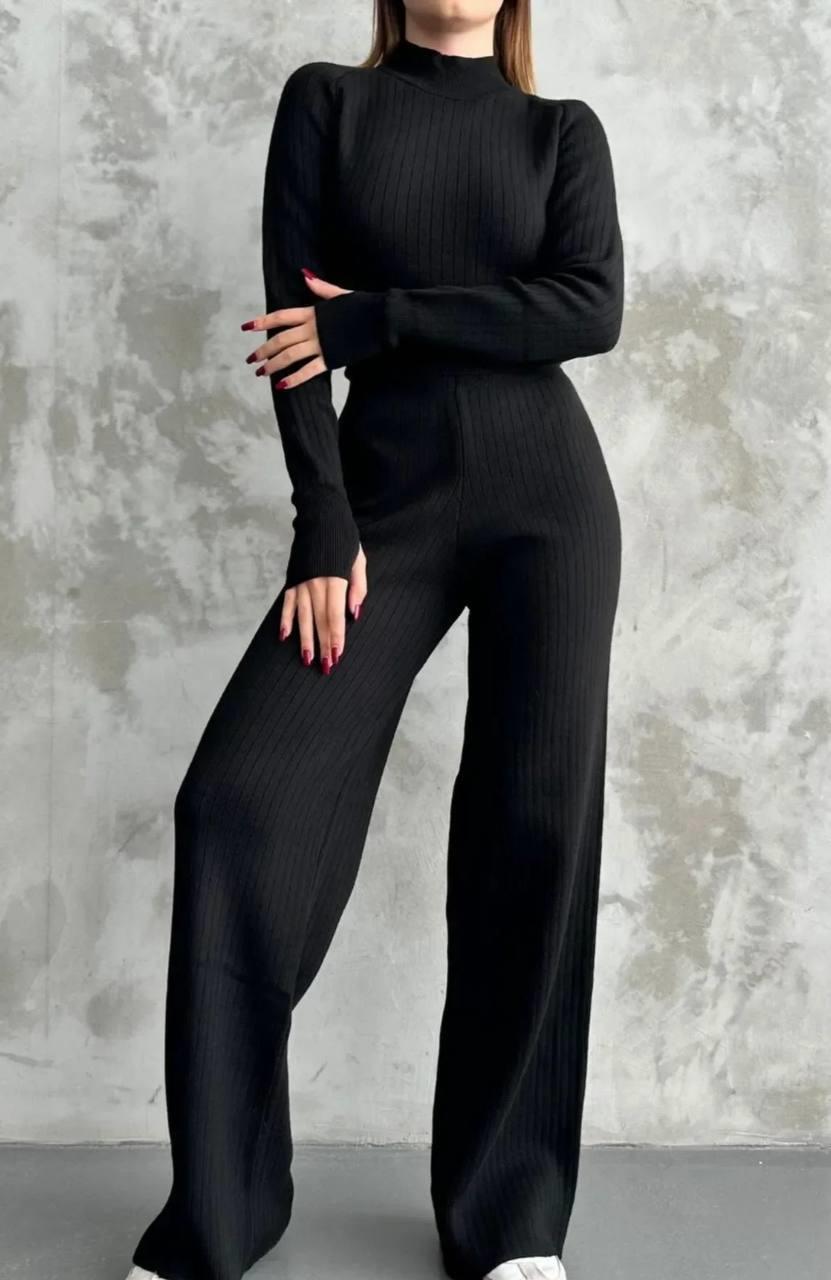 Kadın Siyah Triko Pantolonlu Alt Üst Takım