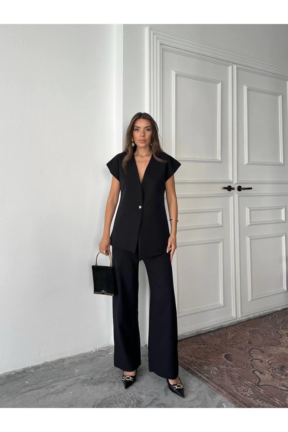 YELEKLİ PANTOLONLU DÜĞMELİ ALT ÜST TAKIM